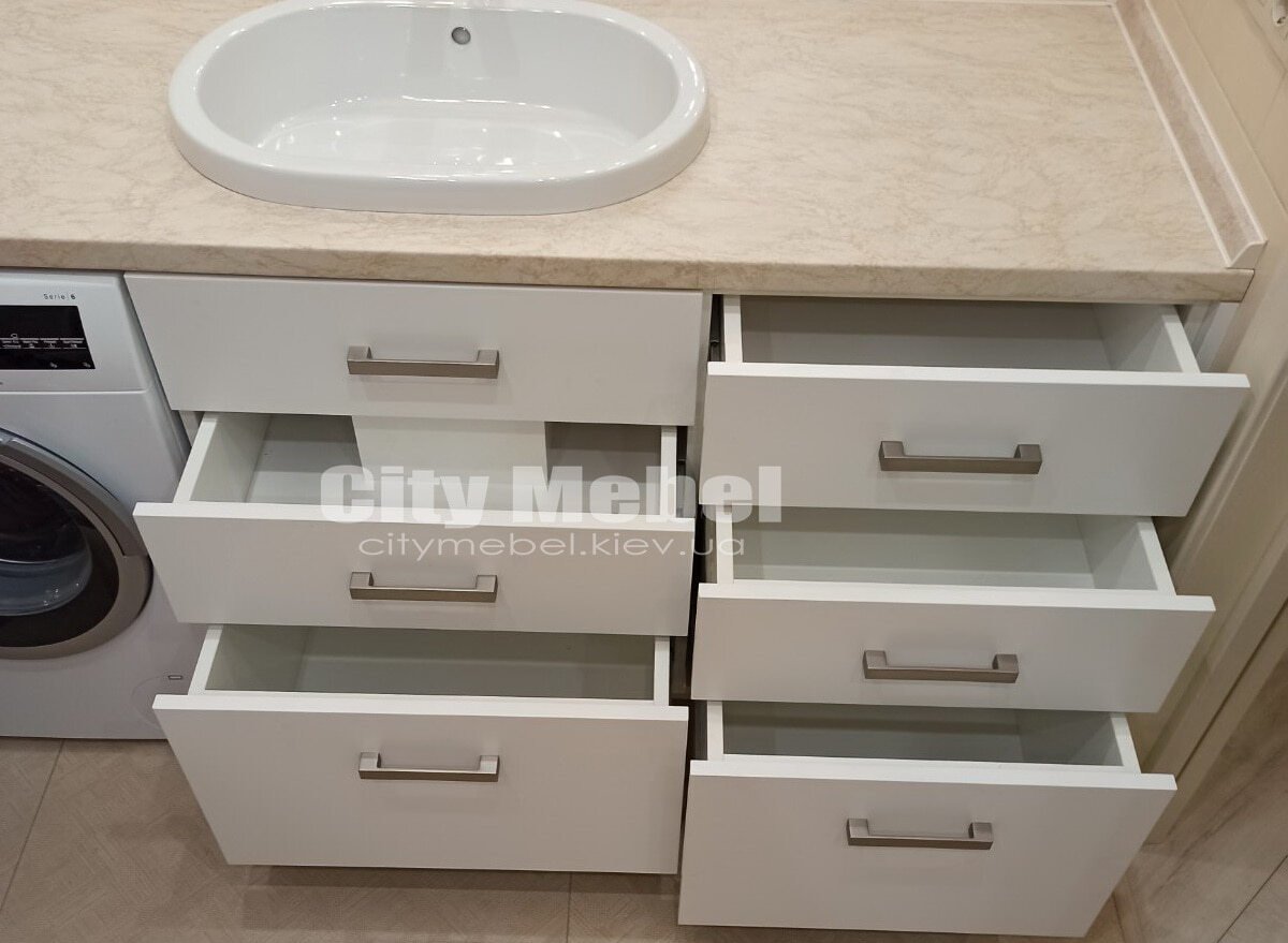 Наша мебельная компания изготавливает мебель для ванной по индивидуальным проектам. Мы используем качественные влагостойкие материалы, которые прослуша много лет. Предоставляем гарантию на нашу мебель. Мебель может быть изготовленна из влагостойкого ЛДСП, фанеры, МДФ, массива дерева. Столешницы дерево, мдф, натуральный и искуственный камень.